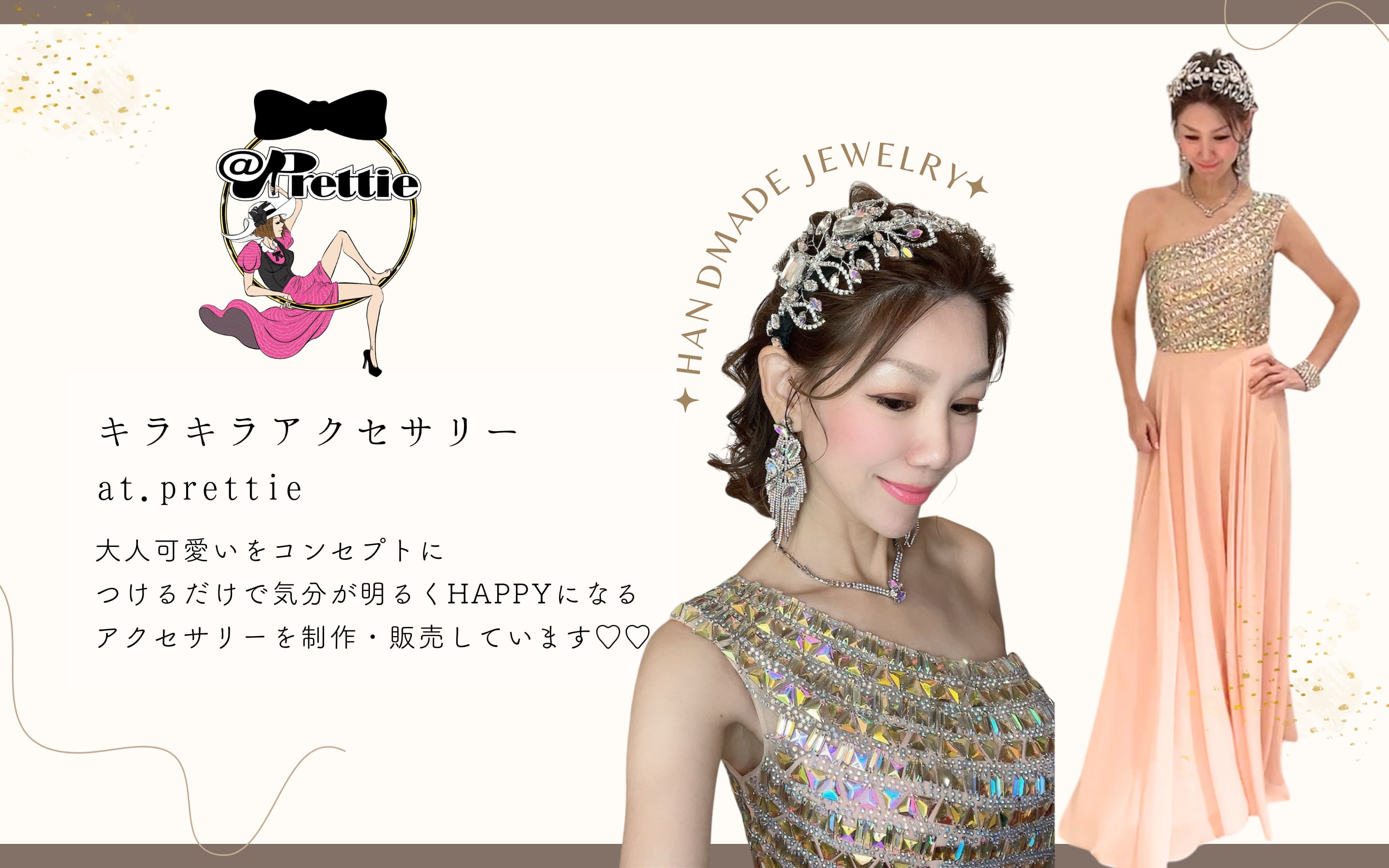 キラキラアクセサリーアットプリティエでは 大人可愛いをコンセプトに つけるだけで気分が明るくHAPPYになるようなアクセサリーを制作販売しています♡♡♡